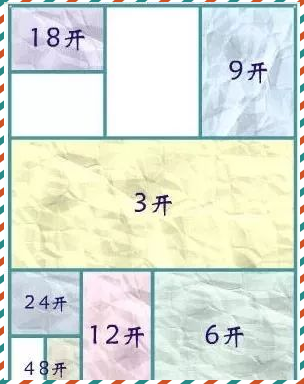 在了解了一般的二开法尺寸后,我们进一步探讨特殊情况下的二开法,以及与之相对的三开法。三开法通常得到的是3的倍数开数,例如3开、6开、9开、12开和15开等。同样地,三开法也分为常规和特殊开法,具体情形可见下图。